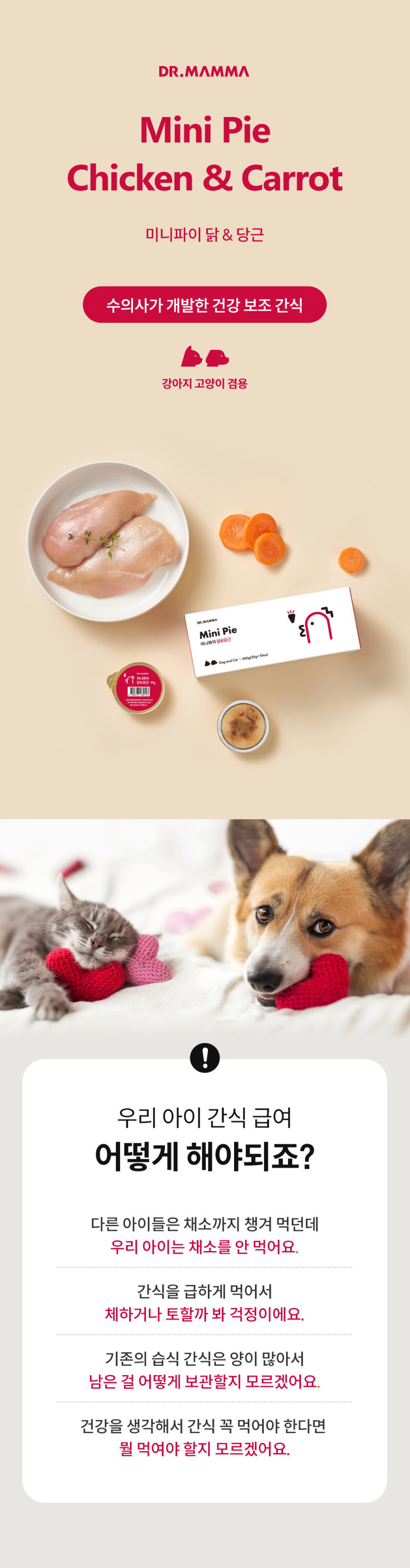 (DOG/CAT) 닥터맘마 미니파이브이 닭가슴살&당근 30gx10ea (근육형성) 그레인프리,신선한원료,소화잘되는텍스쳐,저자극&저칼로리