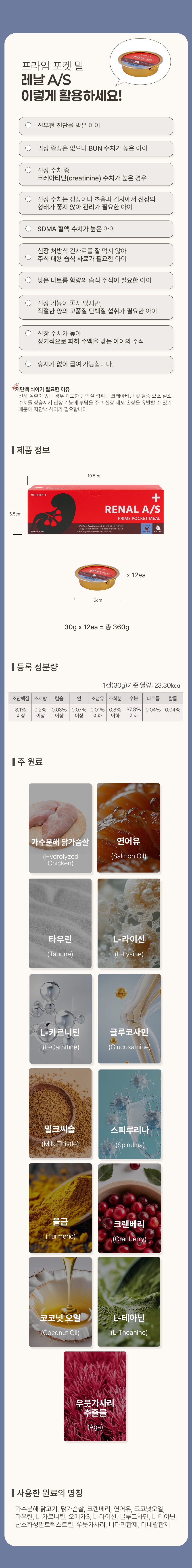 (CAT) 메디코펫 프라임 포켓밀 캣 레날 A/S(360g(30g*12ea)) 신장 건강에 도움주는 가수분해 닭고기 처방캔